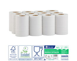 Papírové ručníky v rolích MERIDA OPTIMUM MINI, 2-vrstvé, bílé, délka 60 m, (12rolí/bal)