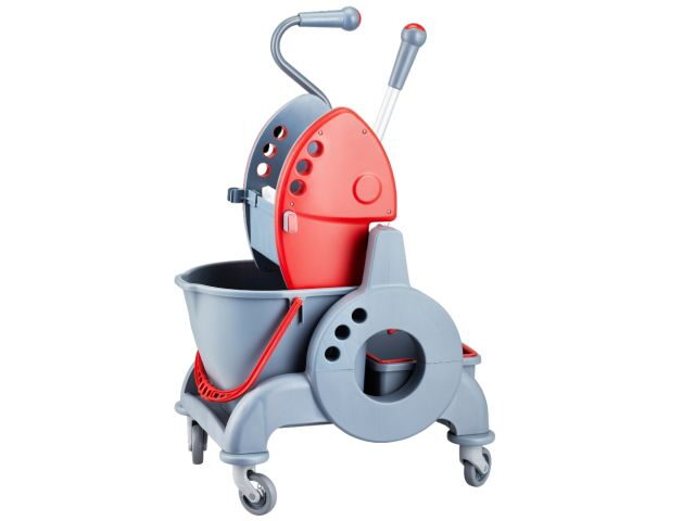 - Úklidový vozík MERIDA červený s ergonomickou rukojetí jednokbelíkový 15l + box 8l, ždímač