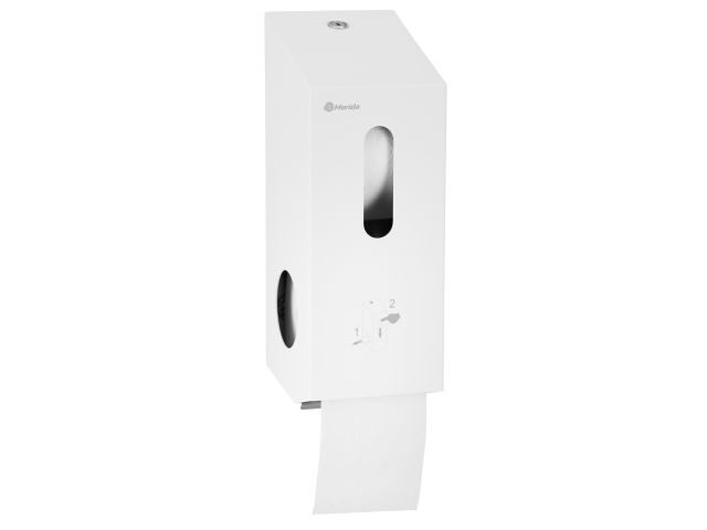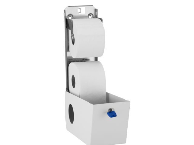 - přizpůsobeno pro malé role toaletního papíru- pojme dvě role papíru, druhá je k dispozici po spotřebování první- má okénko pro kontrolu množství papíru.